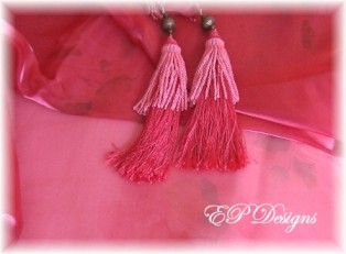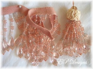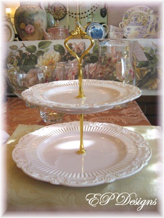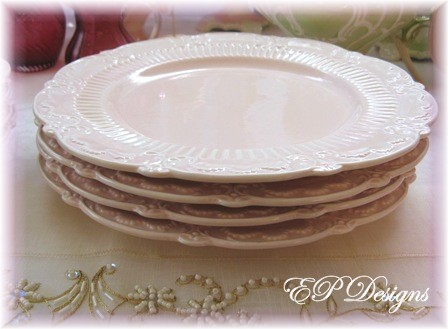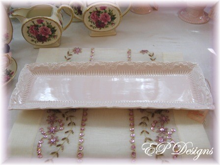 ….And a pink tray for sandwiches? Although, I’d prefer to serve delicious chocolates instead. Notice something sparkling under the tray? They are the pink beads and sequins of a table runner.